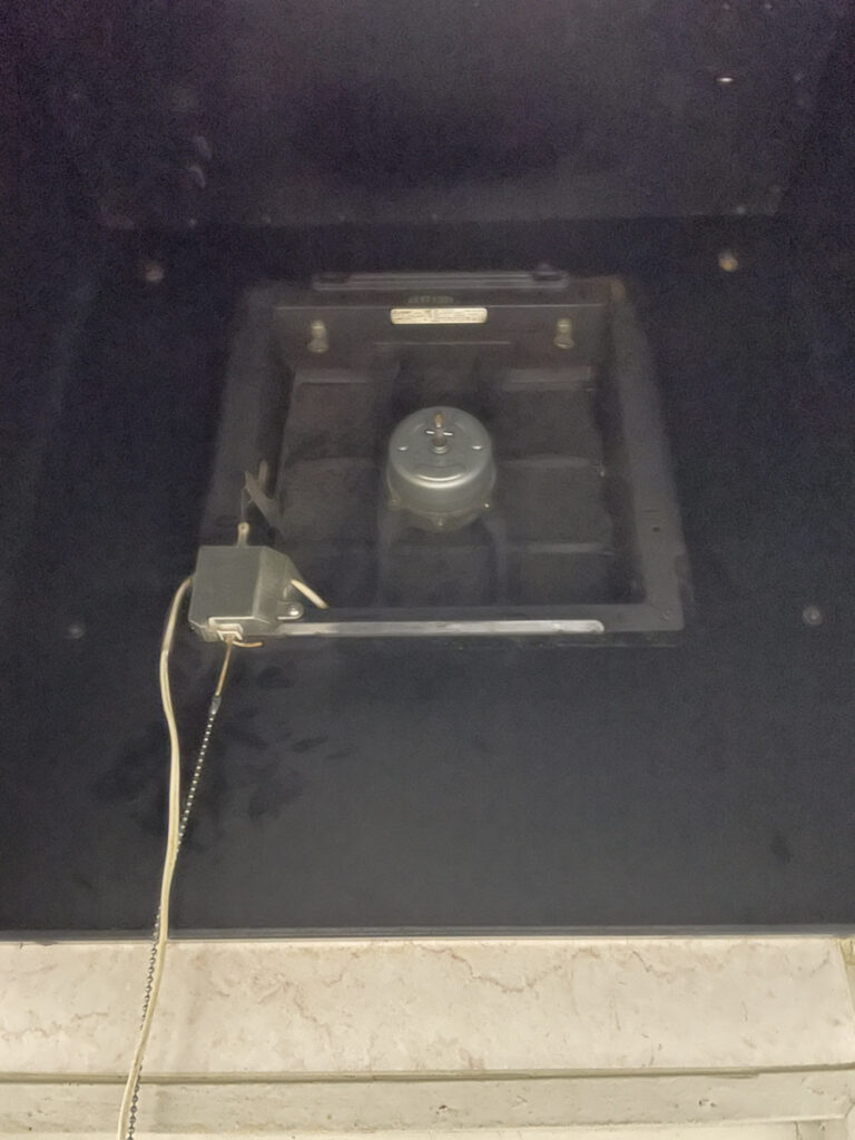 まずは施工前の状況です。お伺いしたところ、スイッチを入れてもモーターが回らず、全く換気ができない状態でした。